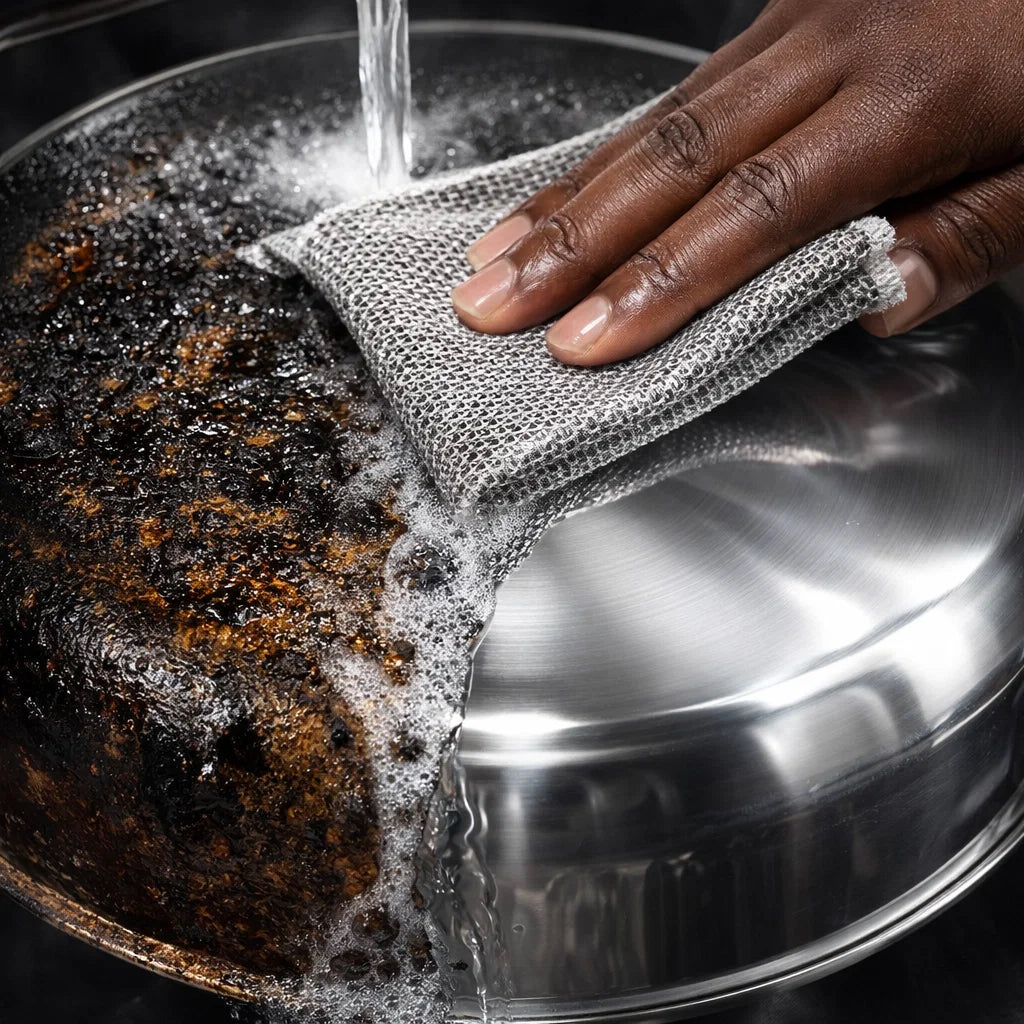 Parfait pour les marmites en aluminium, poĂȘles antiadhĂ©sives, verres, assiettes rĂ©chaud Ă gaz⊠il frotte bien, mais reste doux.